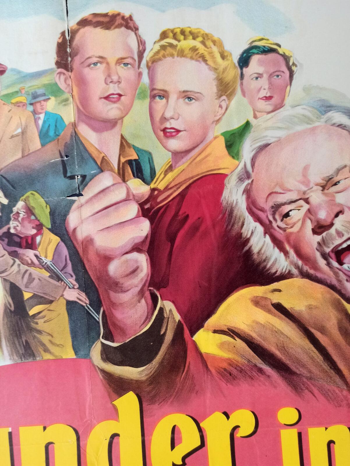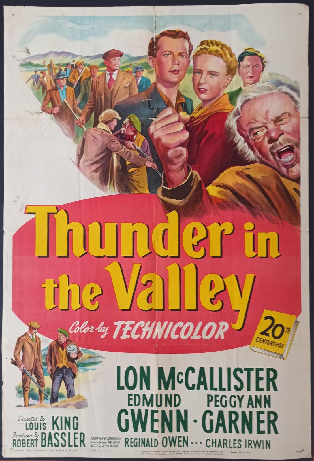 Oryginalny, amerykański plakat filmowy z 1947 roku do produkcji „Thunder in the Valley”.